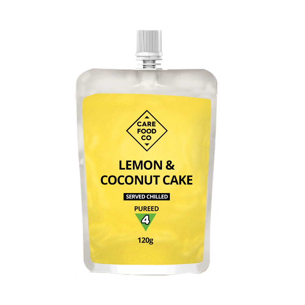 Care Food Co’s Lemon & Coconut Cake is a delicious and thoughtfully crafted dessert designed for people who require a texture-modified diet, particularly those who need pureed or soft foods in line with IDDSI Level 4 standards.